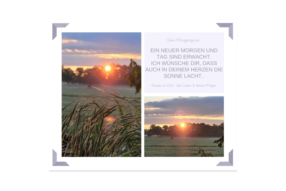 kannst Du in meinem WhatsApp-Status, bei Facebook oder Instagram einen kleinen Morgengruss sehen, der Dir Deinen Start in den Tag versüßen